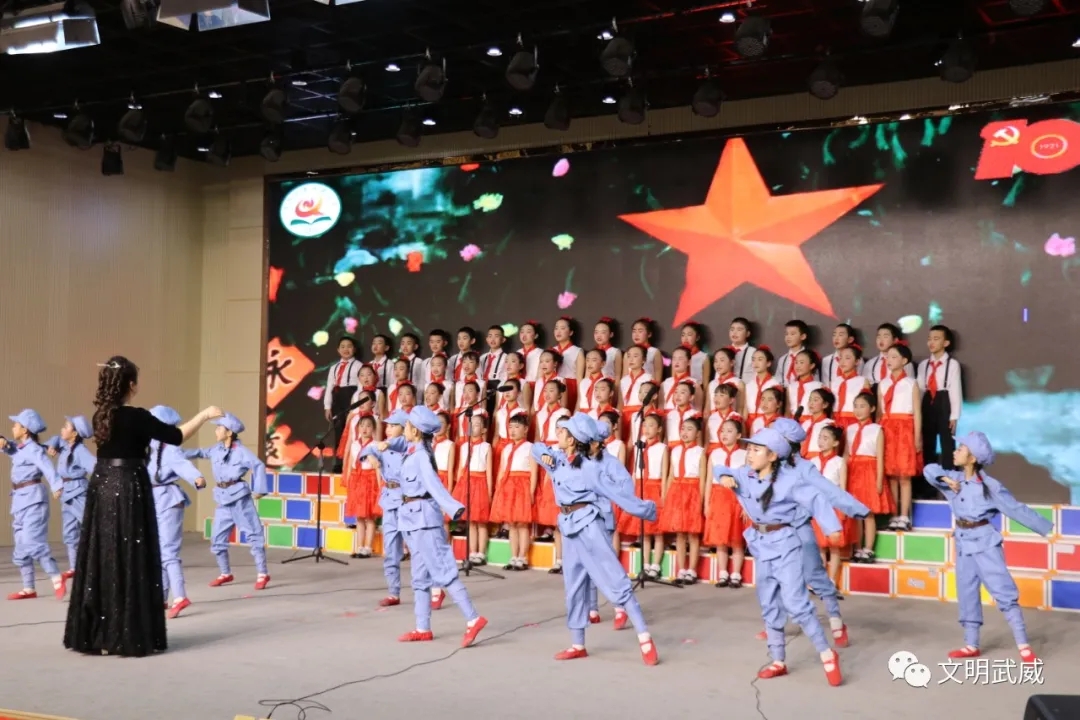 第二篇章《童心向党·唱支红歌给党听》将活动推向高潮,皇台九年制学校选送的合唱曲目《井冈杜鹃红》《瑶山夜歌》《我们是共产主义接班人》唱出了青少年从小就要听党话、感党恩、跟党走的决心;青年巷小学选送的合唱曲目《红星歌》《祖国在我心窝里》《中国少年先锋队队歌》深情礼赞党的百年华诞;新城一校选送的合唱曲目《红星歌》《梨花又开放》《国家》唱出了新时代青少年对祖国的美好祝愿。