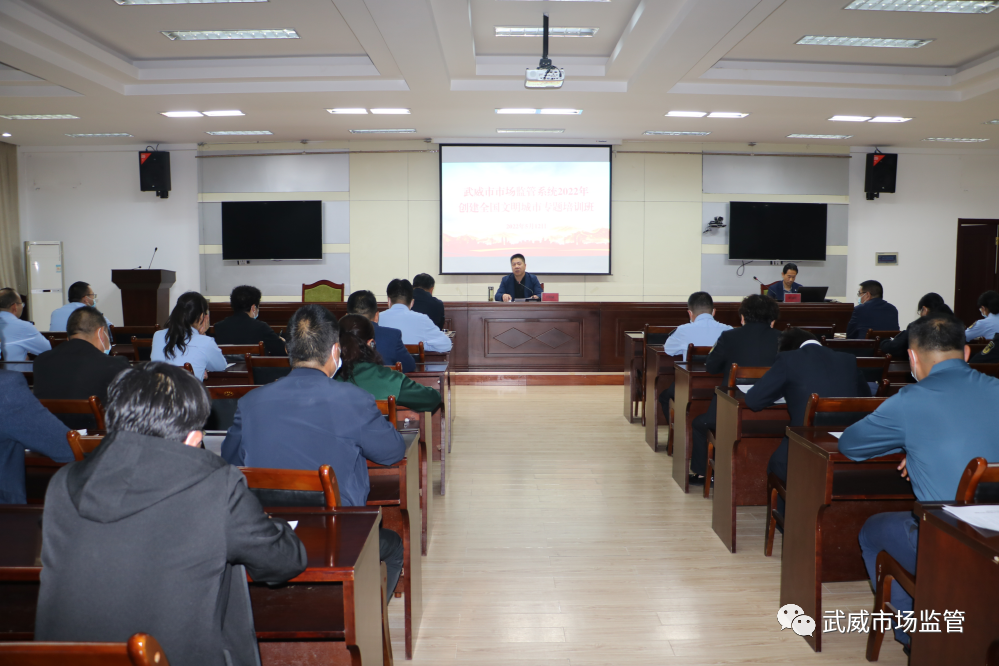 为提升市场监管系统、行业创城工作人员对《全国文明城市测评体系》测评指标的理解把握和贯彻落实能力,提高创建全国文明城市的业务能力和工作水平,5月13日,武威市市场监管局组织召开2022年第一期全市市场监管系统创建全国文明城市专题培训班。