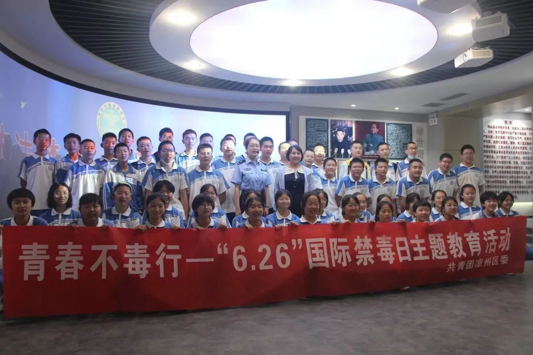6月23日下午,凉州团区委联合武威第十中学开展“6.26国际禁毒日”主题实践教育活动,组织青少年学生参观武威市凉州区禁毒教育基地。