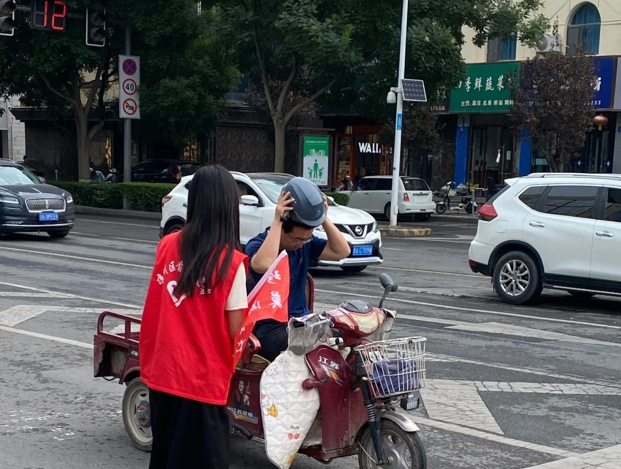 活动中,志愿者身着志愿者马甲,手持劝导旗,在人流密集的十字路口,耐心劝导行人、非机动车辆驾乘人员等自觉遵守交通秩序,安全文明出行,同时也为过往群众提供力所能及的帮助,获得了市民群众的点赞和好评。