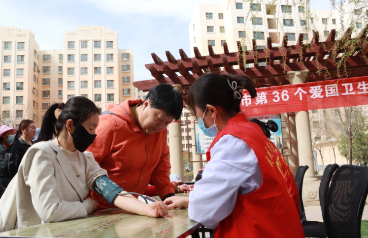 今年爱国卫生月的宣传主题是“健康城镇 健康体重”。活动现场,武威市爱卫办和凉州区宣武街银武社区,组织志愿者发放宣传手册,面对面向群众普及卫生健康知识。同时,医护人员为群众免费测量血压、血糖,进行健康咨询,营造人人关注爱国卫生、参与爱国卫生的良好氛围。