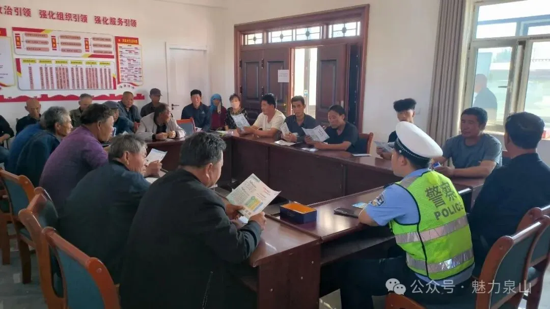 为有效预防和减少农村道路交通事故的发生,近日,民勤县泉山镇应急管理和生态环境服务中心联合镇派出所开展了“美丽乡村行· 平安你我他”为主题的交通安全宣传活动,让交通安全走进生活、贴近群众,全力筑牢农村交通安全“防火墙”。